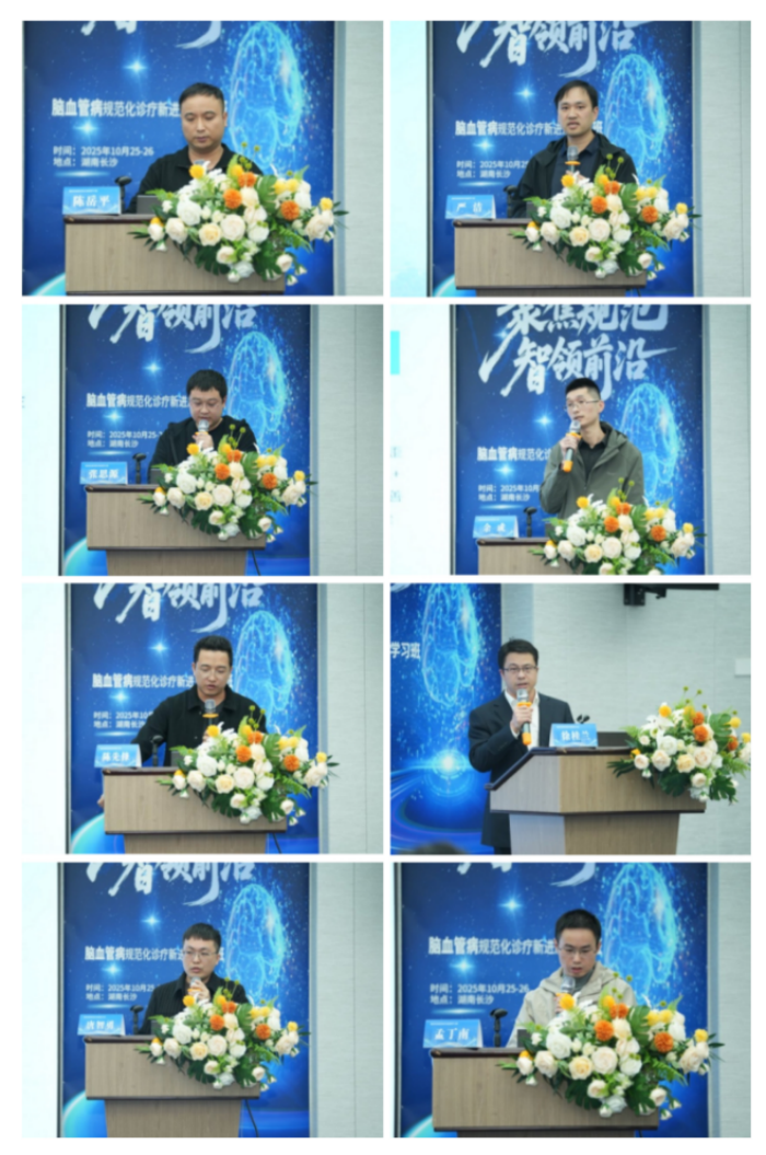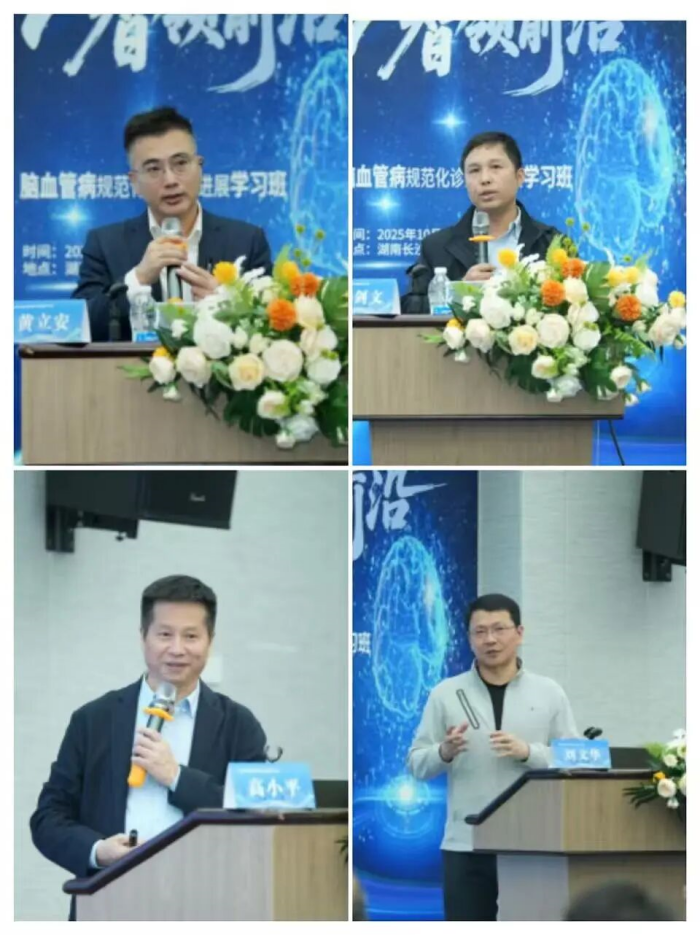 在脑血管病专场,暨南大学附属第一医院黄立安教授、湖南省人民医院杨剑文教授、长沙经开医院高小平教授、湖南省脑科医院刘坤教授、武汉市第一医院刘文华教授分别就卒中重症管理、血管内治疗进展、动脉瘤诊疗策略及特殊类型卒中处理等热点议题进行了系统阐述和经验分享。