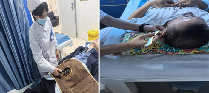 敬老月期间,中西医结合科团队还特别探望了本科室两位退休老主任张魁及黄建乐老师,送上真挚的节日问候。细致询问他们的睡眠质量和身体状况,现场进行耳穴压豆助眠调理,并叮嘱日常养生要点,让老专家们深切感受到后辈的尊重与科室的牵挂。