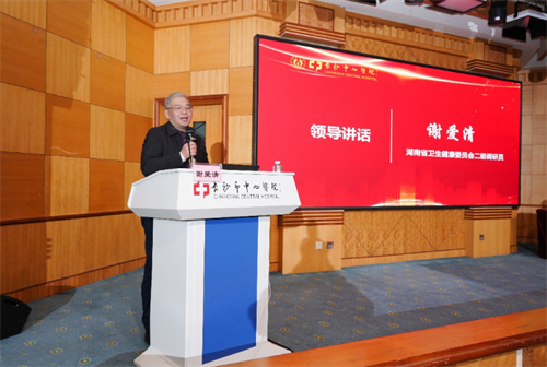 党委书记邓平主持,湖南省卫生健康委员会二级调研员谢爱清,长沙市卫生健康委员会党组成员、副主任万胜,中南大学湘雅二医院党委书记柴湘平,湖南省专科护士发展工作委员会主任、中南大学湘雅二医院护理部主任黄伶智,长沙市专科护理质量控制中心主任、香港马会app