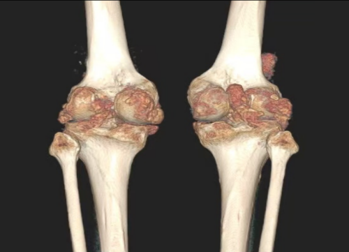 CT影像资料显示布满双膝关节的痛风石