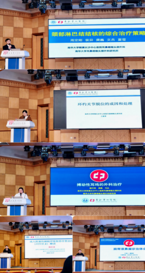 肿瘤科杨相辉副主任医师全面综述《头颈部肿瘤的新进展》,强调综合治疗与个体化策略的重要性;耳鼻咽喉头颈外科周定刚副主任结合典型病例,详细分享《颈淋巴结结核的综合治疗策略》,深入探讨药物与手术干预的优化选择;王蔓菁副主任医师针对《环杓关节脱位的成因和处理》进行剖析,强化了对这一急症的早期识别与处置能力;郭任重主任医师系统介绍《阻塞性睡眠呼吸暂停低通气综合征的序贯治疗》,凸显多学科协作模式下规范化分级管理的优势;杨中纯副主任医师分享《搏动性耳鸣的手术治疗》的经验与技巧,对手术适应症与风险管控进行细致阐述;康晓明副主任医师结合手术视频,总结《鼻内镜下脑脊液鼻漏诊治体会》,重点讲解颅底重建的关键技术要点。