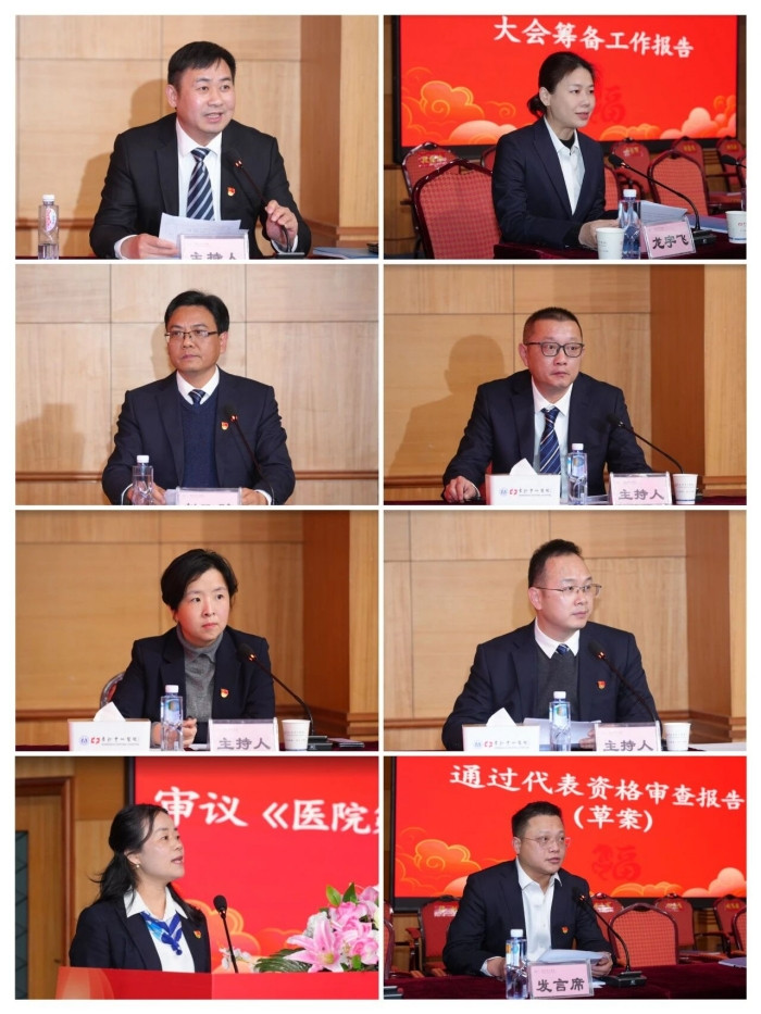 本次大会的一项重要议程是选举产生新一届工会领导班子。经过严格的民主程序,陈胜文等17名同志当选为医院第六届工会委员会委员;胡春飞等3名同志为经审委员会委员;谭创等11名同志为女职工委员会委员。会后,新一届工会委员会、经费审查委员会、女职工委员会召开第一次会议,选举陈胜文同志为工会主席,谈慧同志为工会常务副主席,胡春飞同志为经审委员会主任,谭创同志为女职工委员会主任兼工会副主席。