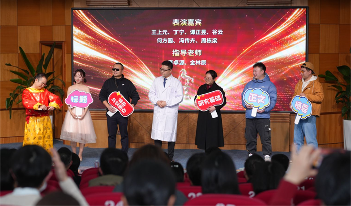 科教部选送的脱口秀《立项风云:谁才是C位?》以轻松诙谐的方式,生动演绎了科研团队“内卷”背后的协作与拼搏,赢得阵阵掌声。