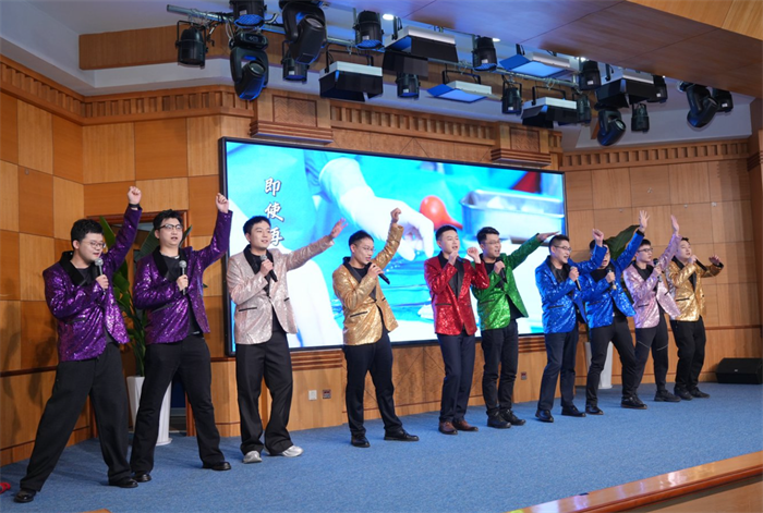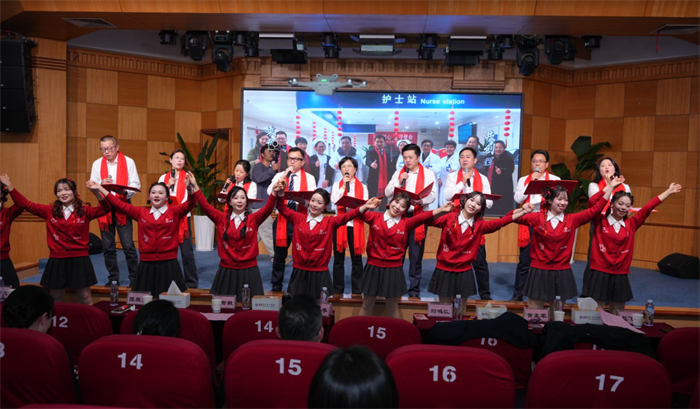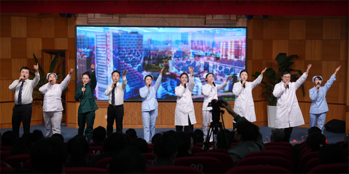 大会尾声,全体院领导登台献唱《医路同心创辉煌》。歌声中,有跨越时代的担当,有医路同心的坚守,更有共创辉煌的豪迈。台下职工自发举起手机灯光,随节拍挥舞,汇成一片温暖的星海。