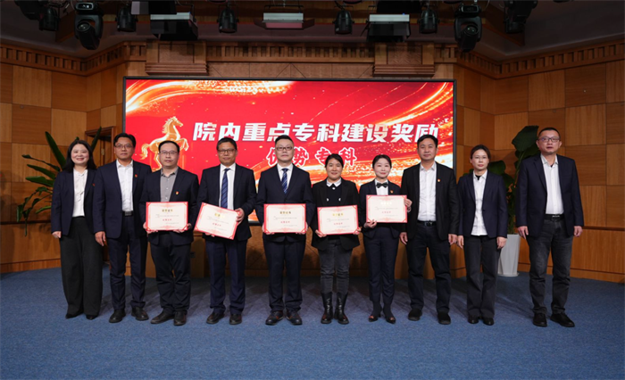 在重点专科建设颁奖环节,呼吸与危重症医学科等4个国家临床重点专科及培育专科、骨科等5个优势专科、肿瘤科等7个骨干专科、内分泌科等7个潜力专科依次登台。正如主持词中所说:“重点专科建设是医院高质量发展的核心引擎和立院之本。”一张张奖牌,不仅是对过往成绩的肯定,更是对未来攀登的期许。