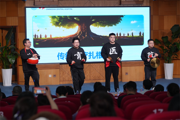 为深入贯彻健康中国战略,顺应全民健身热潮,医院成功获批长沙市体育医院。院团委、人力资源管理部、员工健身协会带来的创意节目《湘音湘情话融合体卫共建跃星城》,将长沙方言三句半与燃脂尊巴巧妙融合,用“湘辣”创意诠释了“上班治伤病,下班练筋骨”的体医融合新生态。