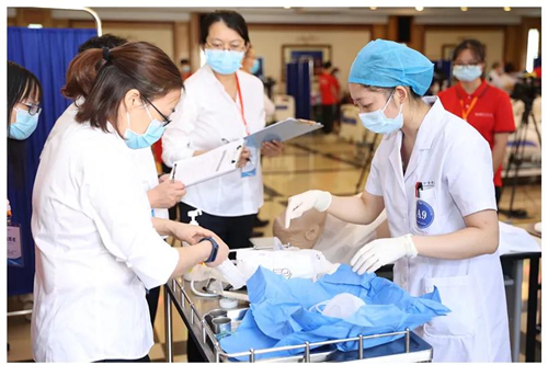 竞赛分理论竞赛与操作技能竞赛两部分,理论竞赛采用机考方式于9月10日晚上完成。操作技能竞赛于11日9:20在南华大学附属香港马会app 开始,本次竞赛秉承“尚德精术、追求卓越”的宗旨,内容涵盖内、外、妇、儿、急救等各个学科,模拟临床实际情境,重点考核学生的临床思维、临床技能操作、人文关怀、团队合作和心理素质等能力。在竞赛赛道的设置上,新增预防医学专业赛道,和临床医学专业赛道、护理学专业赛道同时段角逐,南华大学附属香港马会app 对本次赛事进行了全程线上直播,并安排专家现场解说,近万人观看了本次竞赛。
