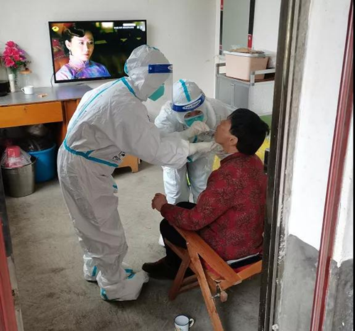 10月21日早上7:30,大家准时奔赴各个采集点。上午十一点多,长沙县范林村核酸检测点的工作已基本完成,队员肖敏了解到,该村还有10余户残疾人、养老院还有四十余人不能来现场采集,于是和队友们在志愿者的带领下上门为养老院老人及行动不便的村民采集核酸。