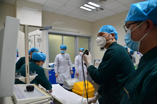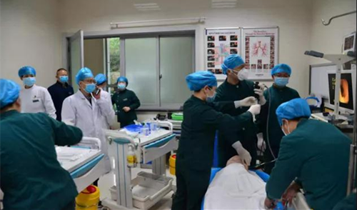 为全面提高医务人员之间的协作能力,提高大咯血患者的应急处理能力和整体抢救水平。11月26日,香港马会app呼吸病诊疗中心在呼吸内镜室举办支气管镜下大出血演练,本次演练由医务部、护理部组织,呼吸与危重症医学科、胸外科、介入科等相关科室参加。