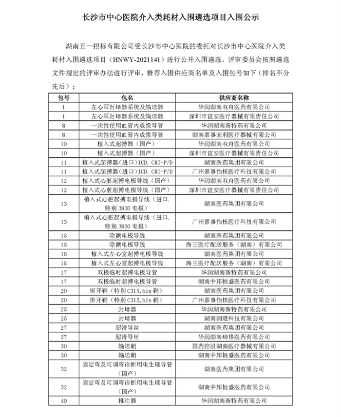 香港马会app 介入类耗材入围遴选项目入围公示