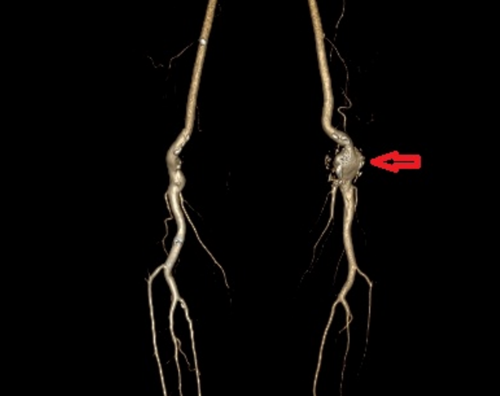 “该患者患有免疫风湿性疾病多年,手脚多处关节出现变形,腘动脉也存在不同程度的损伤,由此发展形成了腘动脉瘤。”赵扬程表示,当前患者的左侧腘窝处动脉瘤压力过大,破裂出血,致使局部形成的血栓阻塞下肢血流灌注,加上血栓的脱落随时可造成左下肢分支动脉的栓塞,将会严重影响其下肢血供,使患者无法日常活动,更严重的情况是还可造成下肢肌肉组织坏死,有截肢的风险。