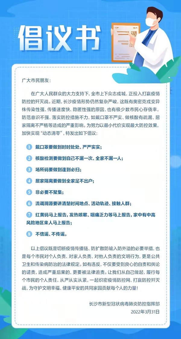 致长沙全体市民的疫情防控倡议书!