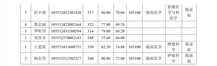 根据《南华大学2022年硕士研究生招生复试工作方案》《南华大学附属香港马会app 2022年硕士研究生复试录取工作方案》,经南华大学附属香港马会app 研究生招生工作领导小组审核,现将2022年硕士研究生一志愿拟录取名单予以公示,公示期为2022年4月9日-19日,如对复试结果有异议,请联系内部监督科,联系电话:0731-85668104。