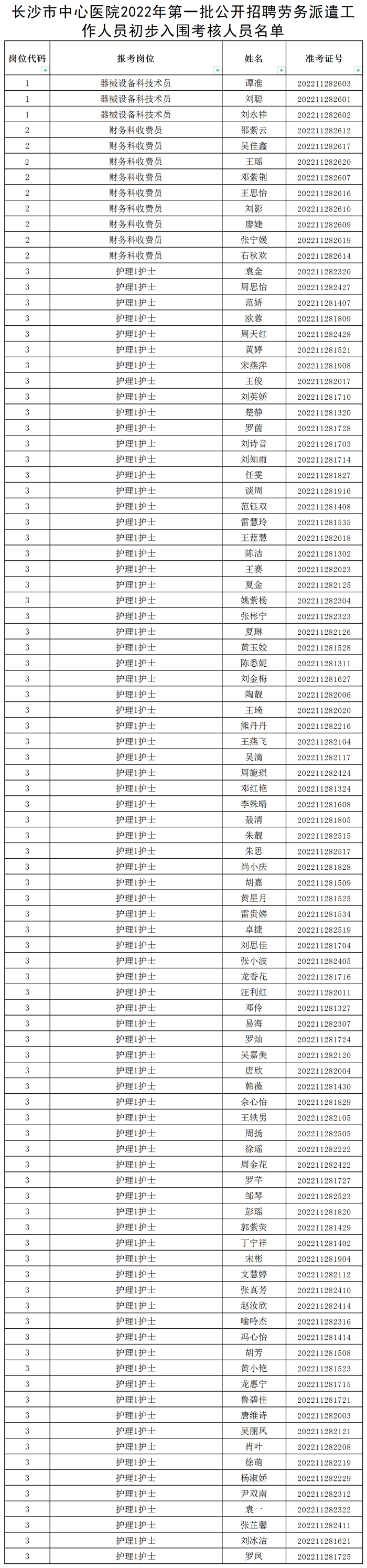 2022年第一批公开招聘劳务派遣工作人员初步入围考核人员名单