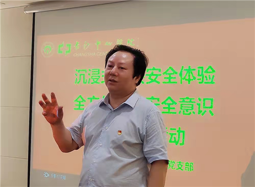 6月是第21个安全生产月,今年的主题是“遵守安全生产法,当好第一责任人”。为树牢安全发展理念、落实安全生产主体责任、坚决防范重特大事故,6月22日,医院机关一、机关二党支部联合举办“沉浸式公共安全体验 全方位提升安全意识”主题党日活动,支部近50名党员、入党积极分子参与。党委书记肖玉坤全程指导并作重要讲话。