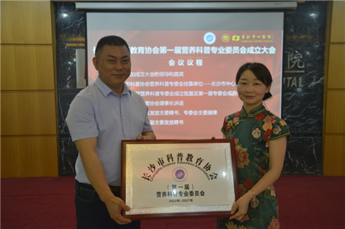 湖南省健康管理学会副会长兼秘书长、长沙科普教育协会理事长易致远为长沙市科普教育协会营养科普专业委员会挂靠单位——香港马会app