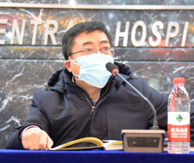 院党委书记肖玉坤讲话。肖玉坤指出,根据上级的最新政策,经医院疫情防控工作领导小组研究出台了医院的最新防控工作举措,全员党员、干部、职工要全面深入贯彻党的二十大精神和习近平总书记关于新冠肺炎疫情防控的重要指示精神,始终坚持以人民为中心的理念,全力做好当前疫情防控工作和医疗救治工作。