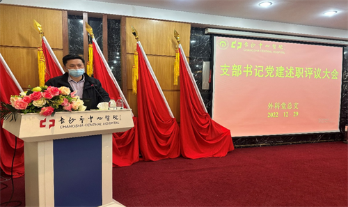 12月29日下午,外科党总支2022年党组织书记抓基层党建工作述职评议大会在办公楼二楼多功能厅召开。会议由外科党总支书记丑克主持,外科党总支全体委员、所辖各支部全体委员和12名党内外代表参加会议,联点院领导院党委副书记、副院长刘鸣江同志出席会议。