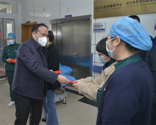 1月20日,新春佳节即将到来,南华大学党委书记高山、校长张灼华、副校长夏昆及医院院领导亲切慰问仍坚守岗位的一线医务人员。