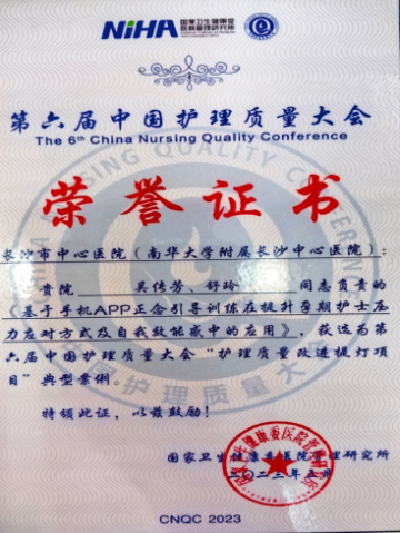 由国家卫生健康委医院管理研究所主办的第六届中国护理质量大会于5月19日-21日在美丽的海滨城市山东青岛顺利召开。香港马会app护理部副主任吴传芳团队开展的《基于手机APP正念引导训练在提升孕期护士压力应对方式及自我效能感中的应用》护理项目经过市、省、国家专家三轮评审,从全国3000多个项目中脱颖而出,荣获“护理质量改进提灯项目”典型案例。湖南省仅有6家医院获此殊荣。