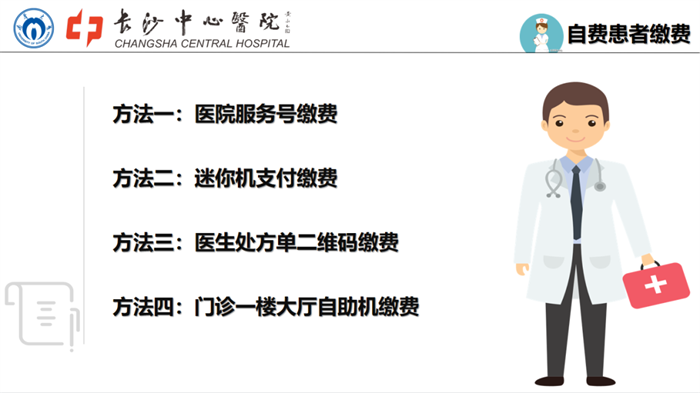 自2022年10月1日长沙市医保开通门诊共济,因病人均需读取医疗保障卡、身份证或医保电子码等凭证后方能进行门诊共济费用报销,医院窗口缴费病人剧增。为节省您的宝贵时间,自费患者和门诊共济患者除人工窗口缴费外还可分别选择以下几种缴费方式。