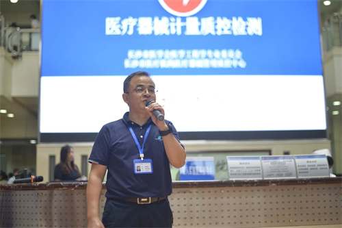 接下来,器械设备科主任、高级工程师周建武就《医疗器械计量质控检测》向现场的群众介绍医疗器械的定义及计量检测的范围。他表示,医疗机构中常见的体温计、血糖仪、血压计、心电图机、监护仪、B超等设备都是通过计量量值来表示检测结果,医学计量是保障医学检测参数量值准确可靠、保障患者生命安全的重要保障。现场专业工程师还演示了如何用生命体征模拟器对电子血压计、监护仪等监测仪器进行计量检测,以确保监测参数准确可靠。