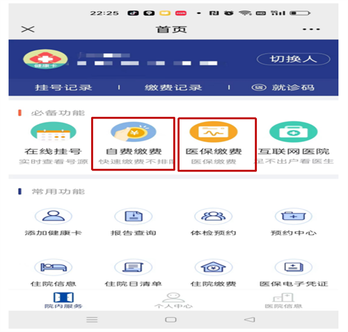 第二步:您可根据情况选择【自费缴费】或【医保缴费】