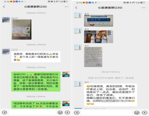 心脏康复微信群的建立,也为“康友”们与医务人员无障碍沟通提供了平台,“康友”们可在线上预约,咨询。康复专家也会在群里及时解答疑惑,传递心脏康复小知识。很多“康友”们都在微信群里打卡,分享自己治疗后的收获和喜悦。