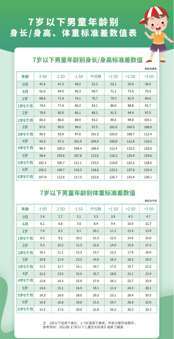 从今年的3月1日开始,我国已施行最新版《7岁以下儿童生长标准》。新标准较2005年版身高体重标准均有提高。随着生活水平的上升,社会对身高的要求也在提高。身高和体重也成了家长们最关心最关注的两个指标。