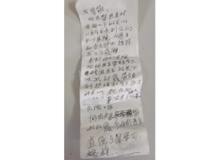 )脊柱外科病房里,一位衣着朴实,讲着一口家乡话的老人给医护人员送来一张皱巴巴的小纸条,上面用歪歪扭扭的字迹写了一封感谢信,虽然感谢信里错别字不少,但患者及家属真挚的情感却让大家感动不已。