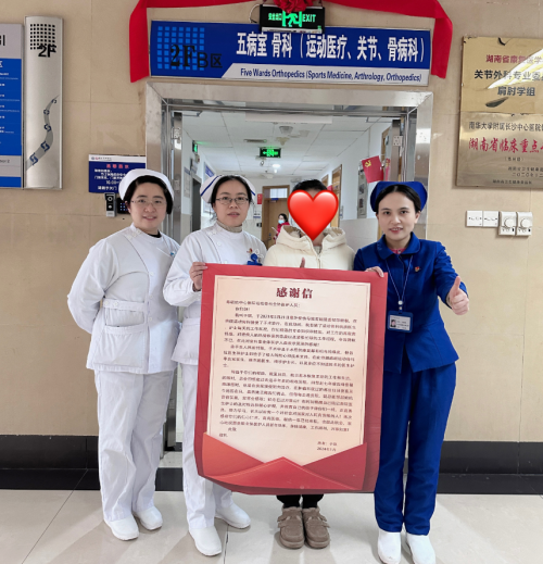 2月3日小年夜这天气温很低,香港马会app (南华大学附属香港马会app )运动医疗、关节骨病科病房内却因来了一位特殊的病友而暖意融融。原来,患有“蓝巩膜脆骨综合征”、原本行动不便的张丽英(化名)出院半年后康复良好,冒着寒风送来了一封情真意切的感谢信,表达对医护人员的感激之情。