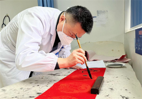 春联不仅是文字的艺术,更是心灵的交流,它让医院这个充满挑战的环境里,也充满了节日的喜庆和家的温馨。志愿者手中的毛笔仿佛成了传递希望与祝福的使者。每一笔一划,都承载着对医护人员辛勤工作的敬意和对患者康复的祈愿。看到医患拿到春联时脸上露出的笑容,我感受到了一种特别的成就感,希望通过这些春联,为医院的每一个角落带去春的气息,为每一位职工和患者送上最真挚的祝福。