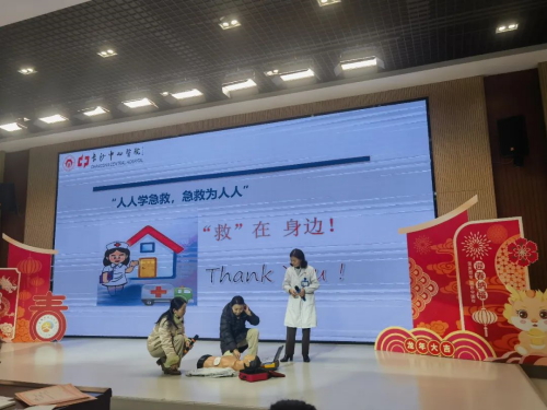 健康管理中心党支部组织委员兼统战委员、副主任、主任医师王晓华为全体师生带来了一场急救自救专题讲座,对从发现患者、评估周围环境、判断意识、呼救,到胸外心脏按压、开放气道、人工呼吸等步骤进行了完整标准的示范。授课后,学校领导、校医及师生在主管护师李玉霞的指导下进行了实际操作演练,学习并掌握每个急救步骤。支部党员们实时点评在急救过程中出现的问题和容易忽略的细节,帮助师生熟练掌握“心肺复苏术”标准规范操作。