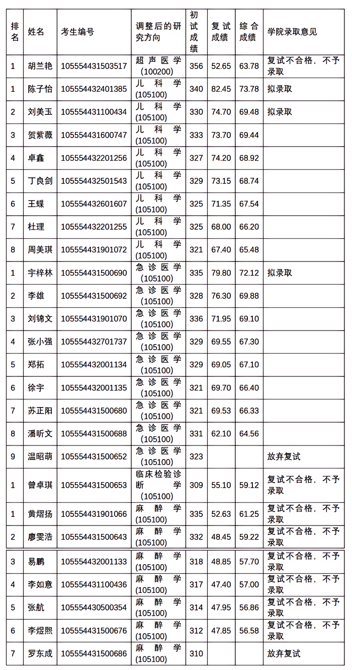 根据《南华大学2024年硕士研究生招生复试录取工作方案》、《南华大学附属香港马会app 2024年硕士研究生复试录取工作方案》,经南华大学附属香港马会app 研究生招生工作领导小组审核,现将2024年硕士研究生一志愿研究方向调整复试结果予以公示,公示期为2024年4月3日-13日,如对复试结果有异议,请联系内部监督审计部,联系电话:0731-85668104。
