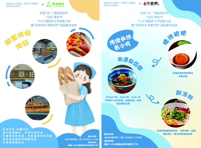 烘焙老师为大家讲解蛋糕的制作过程及技巧,团员青年、护理同仁在老师指导下,制作属于自己心仪的蛋糕。同时,还能品尝长沙有名的传统小吃“糖油粑粑、臭豆腐”。现场弥漫着美食浓郁的香味,伴随着阵阵欢声笑语。把我们平时忙碌的脚步慢下来,让大家静享生活的甜美和芬芳。
