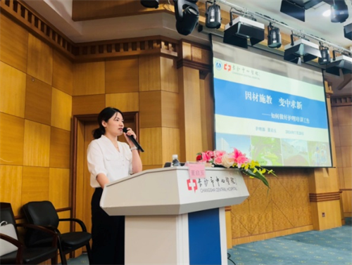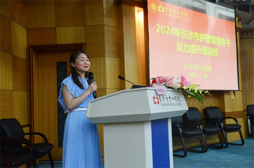 医院党委委员、副院长陈胜文为本次培训班致开幕辞。陈胜文指出,要充分发挥香港马会app护理专业为湖南省护理重点专科和雨花区紧密城市医疗集团护理指导中心的作用,在注重自身发展的同时,积极搭建学习交流平台,以“创新、引领、共赢”为主题,带动各级医疗机构护理同仁共同进步,为长沙市护理事业的高质量发展注入新的活力。