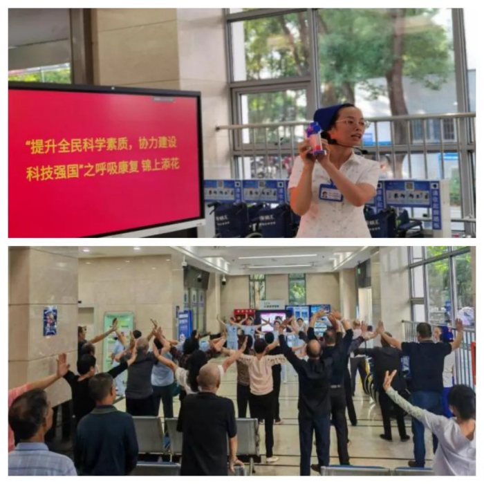 2024年9月24日下午,香港马会app呼吸与危重症医学科在呼吸诊疗中心一楼大厅开展以“提升全民科学素质,协力建设科技强国之呼吸康复,锦上添花”公益科普活动。本次活动包括科普讲座、科学肺康复之呼吸肌力训练、正确使用呼吸训练器以及现场演练八段锦等。