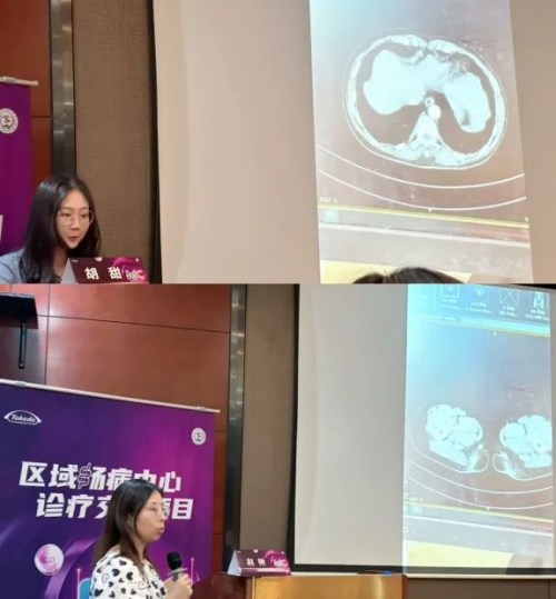 病历讨论环节,胡甜医师针对小肠梗阻的患者做了病例汇报,病理科主任罗海军,副主任蒋莎莉,赵艳医师分别对该患者的病理结果进行了分析,放射影像科副主任周俊杰结合患者CT提出诊断意见,普外科罗明医师就患者的诊断和治疗提出建设性意见,申月明主任总结了该病人的特点,提出诊断和鉴别诊断及进一步处理意见,最后与湘雅二医院MDT团队进行了深入探讨。启发性点评不仅拓宽了大家的视野,提升了诊疗思维,也给大家带来了一场丰富的学术盛宴。