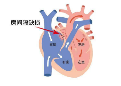 正常人都有两个心房,两个心房中间的间隔,叫房间隔。由于某种原因房间隔发育不好,中间就留下一个洞,即为房间隔缺损。无论哪种类型的房间隔缺损,都是在房间上有个洞,由于左心房的压力比右心房高,所以血流会从高压的左房腔流向右下压的右房腔,持续到分流会引起右侧的血多,引起右房扩大,进而引起肺动脉压力增高。据临床数据统计,我国每年新增先天性心脏病患者约15万~20万人,而房间隔缺损,是常见的心脏病之一。