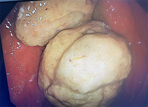 医院消化内科主任、主任医师申月明介绍,陈女士入院后经过腹部CT及胃镜检查,发现患者胃内及结肠内各见一巨大结石,直径约5cm左右。追问病史得知,陈芳近期曾接连进食过5个柿子,结合临床检查结果,医生判断这5个未消化完全的柿子就是造成陈女士胃结石及粪石形成的“罪魁祸首”。
