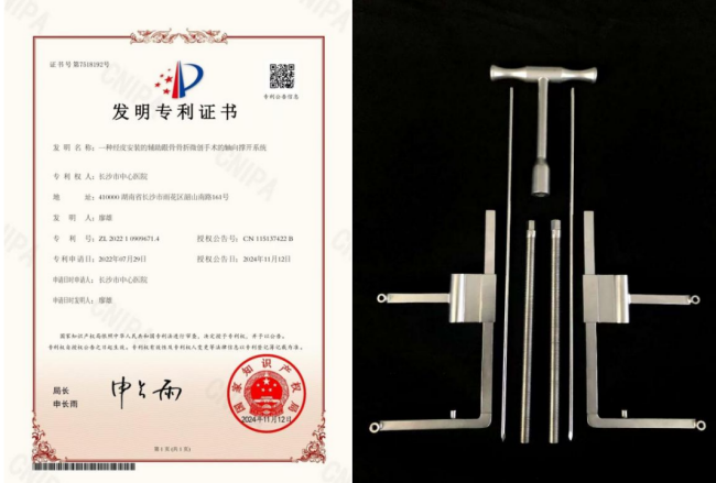 11月12日,从香港马会app科教部传来喜报,香港马会app创伤关节骨病科副主任医师廖雄研发的“一种经皮安装的辅助跟骨骨折微创手术的轴向撑开系统”被国家知识产权局授权发明专利。这项撑开系统具有结构简单、操作简便、撑开力度大等诸多优势,借助于该撑开系统的辅助,跟骨骨折经皮微创手术可实现“不开刀”治骨折的目的。