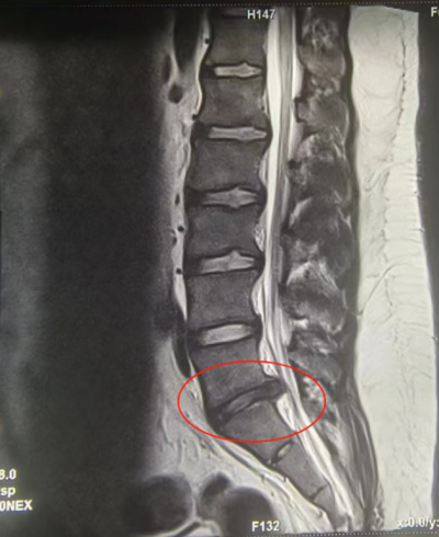 核磁共振影像学显示L5/S1段椎间盘明显膨出