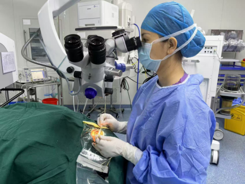 在显微镜的协助下,李先锋在患儿右眼破碎的组织内找到泪小管的断端,然后进行泪小管断端吻合,置入人工泪管,重新建立通畅的引流通道,最后,行内眦成形、皮肤裂伤缝合术。手术大约进行了30分钟,过程顺利。术后晴晴的右眼恢复良好,顺利出院。