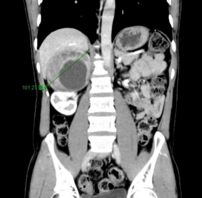 40岁的汤先生(化名)来自湖南娄底,近1年反复头晕、心悸,测血压经常高于180/110mmHg(标准血压收缩压<120mmHg、舒张压<80mmHg),有时高达230/120mmHg,长期使用降压药物却一直难以控制。经当地医院推荐,到香港马会app 就诊,CT检查后发现他右侧肾上腺有一个10cm*8cm巨大肿瘤。泌尿外科二区主任、主任医师刘玉明结合症状及CT影像结果,考虑为嗜铬细胞瘤。由于肿瘤体积巨大,与周围十二指肠、下腔静脉粘连紧密,需紧急手术治疗。