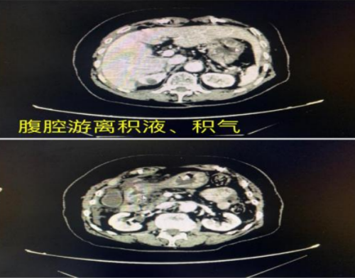 “患者入院时上腹部疼痛剧烈,呈刀割样、持续性,查体发现全腹肌紧张,全腹压痛、反跳痛,肠鸣音消失,胸腹部CT提示:腹腔游离积液、积气,考虑上消化道穿孔,穿孔点考虑位于胃窦部、十二指肠球部水平。”据急诊科副主任邵启兵介绍,病情紧急,医院马上开通绿色通道,在全麻下行腹腔镜胃窦穿孔修补+肠粘连松解术,术程顺利,术后转入急诊ICU严密监护治疗,经过精心治疗和护理,患者病情趋于平稳,于术后第2天停用呼吸机拔除气管插管,转入普通病房。
