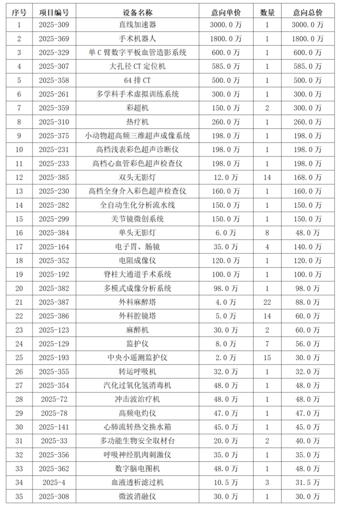 为满足医院业务需求,现对以下医疗设备拟购置项目及规划项目进行市场调研,欢迎生产企业、经营企业及潜在供应商积极参与。