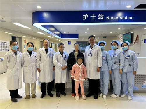 扬扬(化名)康复后和医护人员合影
