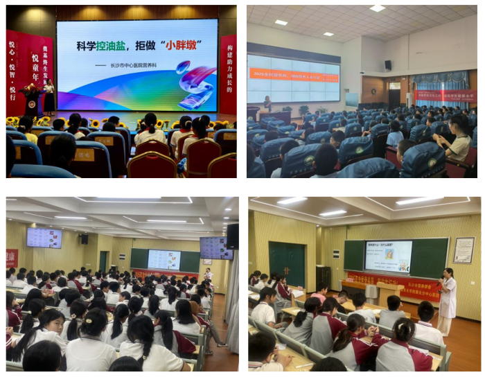 营养教育需要“从娃娃抓起”,科室组建专业讲师团,走进开福区一中、桂花树第二小学、天心区南塘小学、枫树山悦东方小学等多所学校开展生动有趣的科普讲座,揭秘零食“真相”,重油重盐的危害,传授科学减油减盐和体重管理技巧,为师生及家长解读学生营养需求,强化“健康从小抓起”理念,惠及师生1000余人。