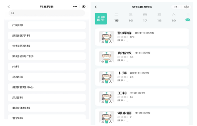 3. 点击选择需要就诊的科室或搜索医生直接挂号咨询。