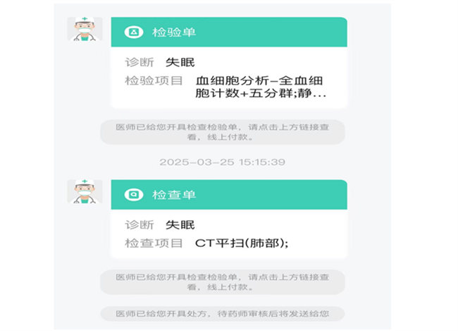 检验检查:根据复诊情况可线上开具检验检查,完成缴费后,可直接预约检验检查时间,然后按照指引直接去相应的窗口完善相关检查,线上可同步查看检验检查结果。